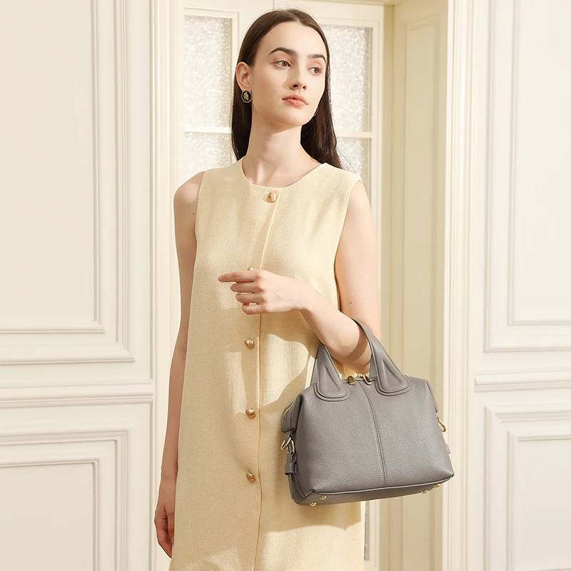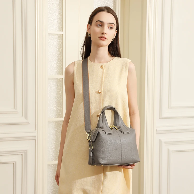 Manufacturer Wholesale Women's Retro Genuine Leather Soft Waterproof Shoulder Bag Two Straps Large Capacity OEM/ODM Custom Logo